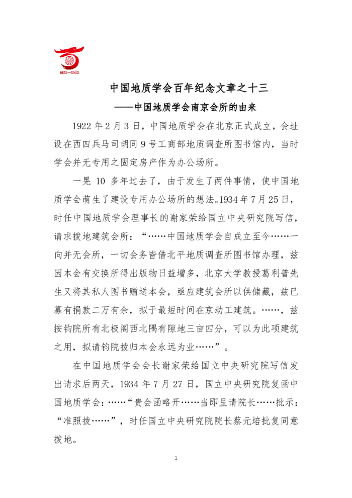 中国地质学会百年系列纪念文章之十三——中国地质学会南京会所的由来