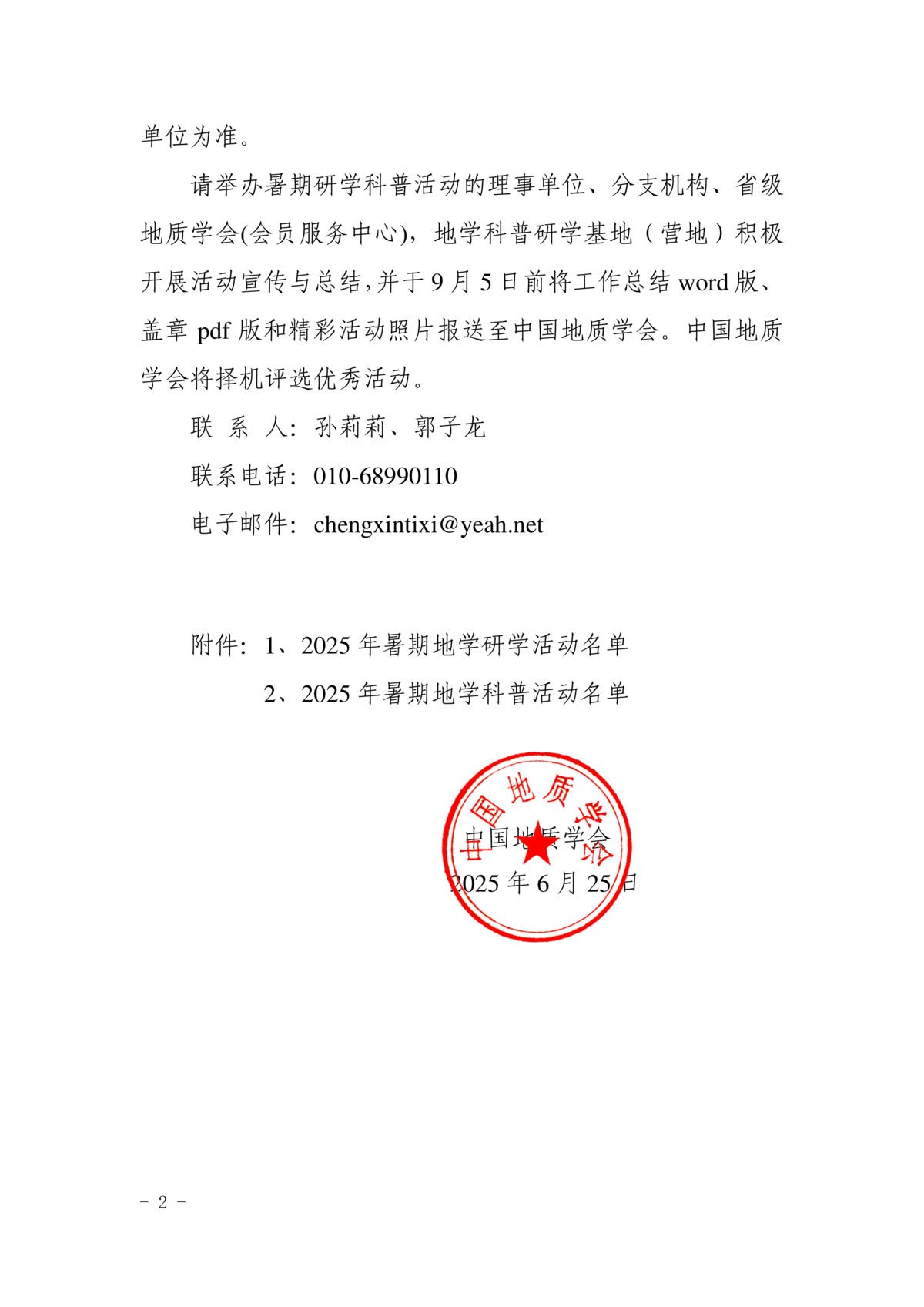 关于积极开展2025年暑期地学科普及研学活动的通知