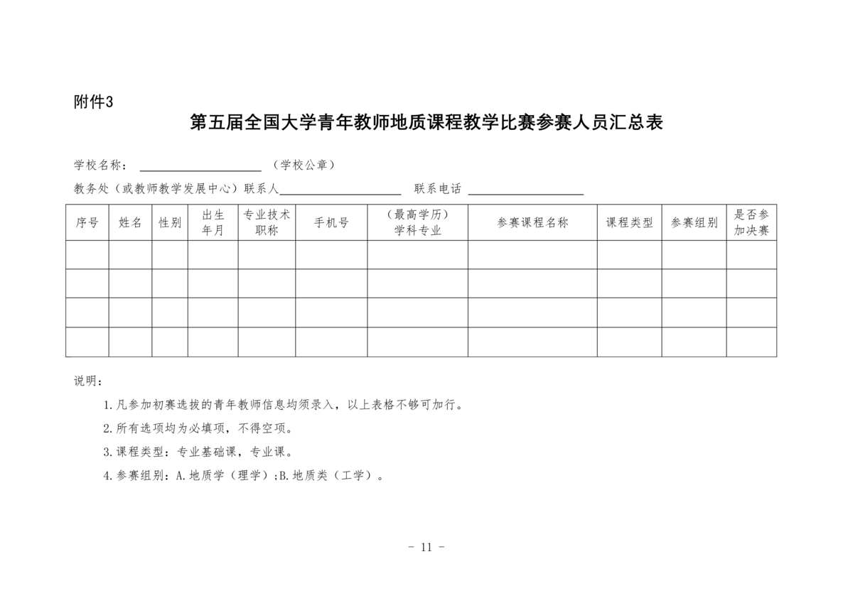 关于举办第五届全国大学青年教师地质课程教学比赛的通知