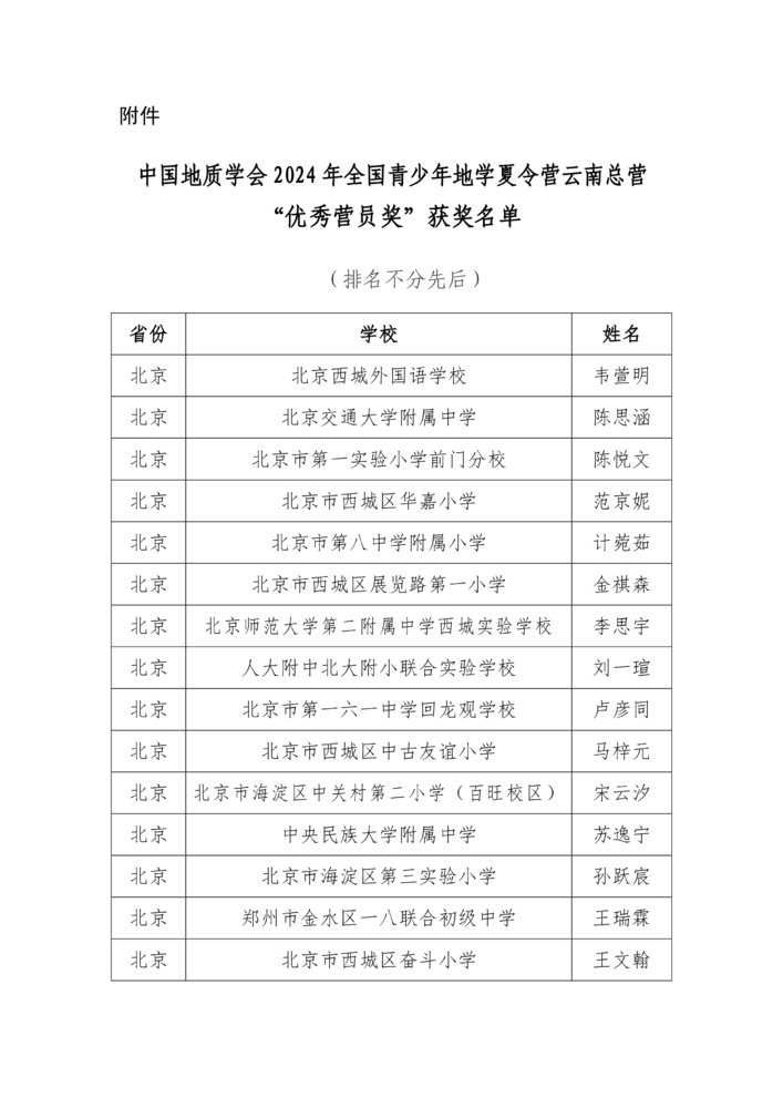 关于颁发2024年度全国青少年地学夏令营优秀营员奖的通知