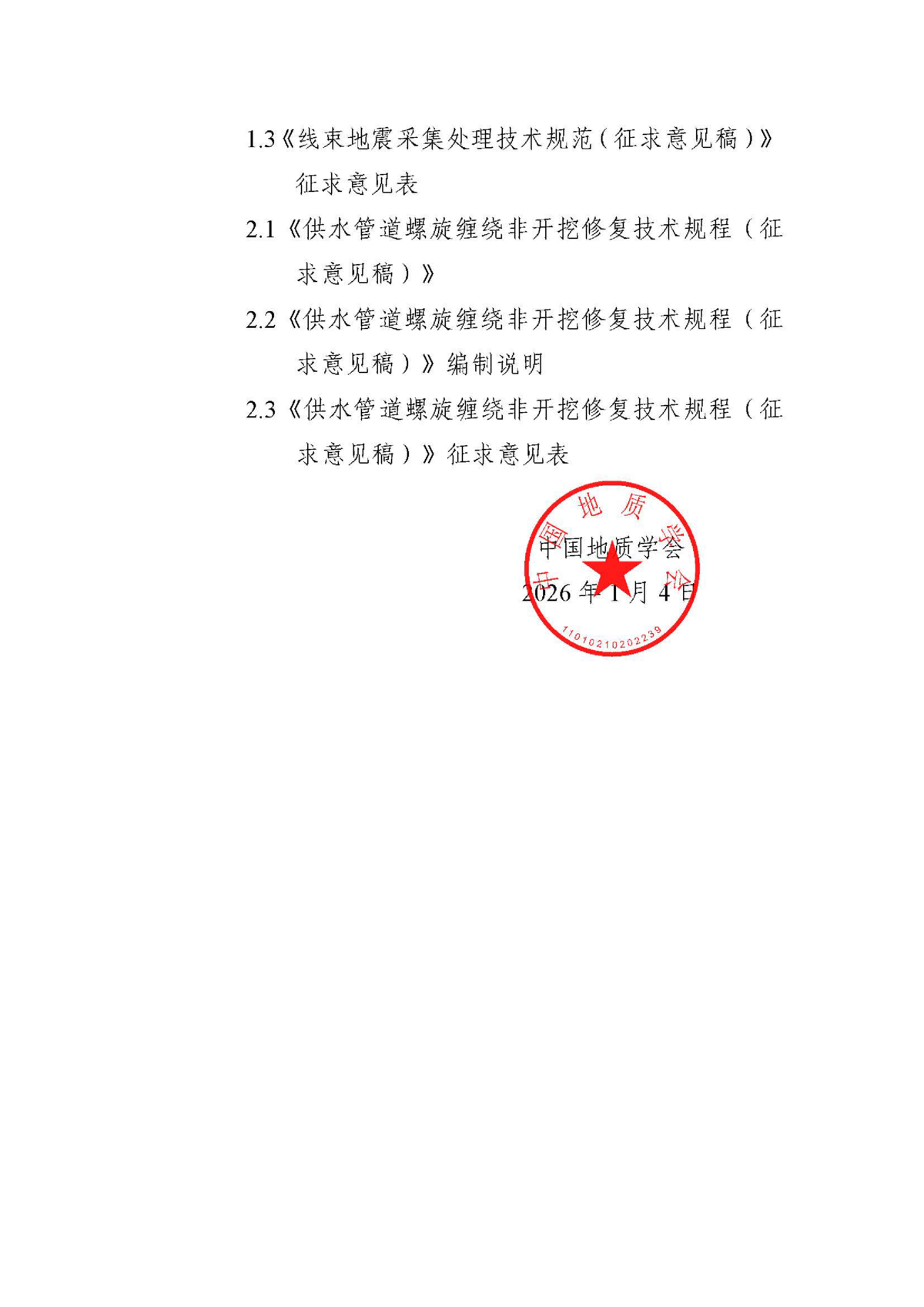 关于《线束地震采集处理技术规范(征求意见稿)》,《供水管道螺旋缠绕非开挖修复技术规程(征求意见稿)》