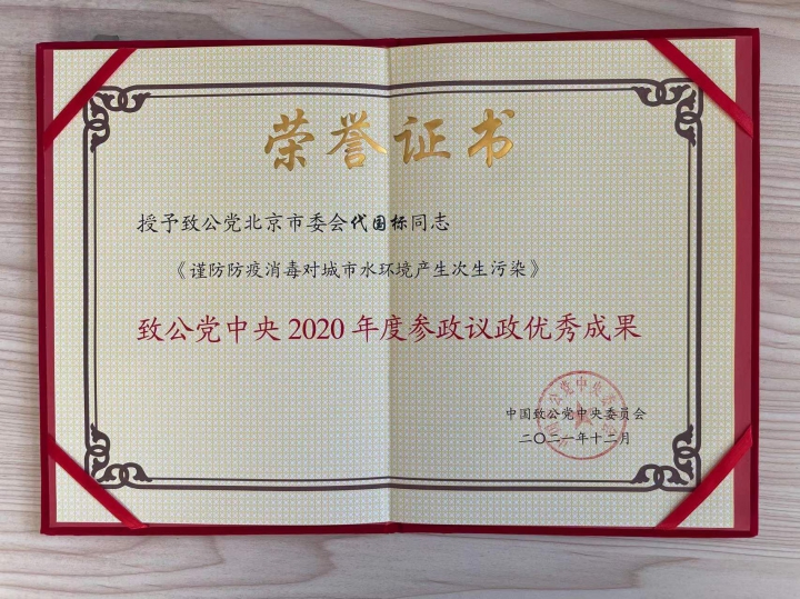秘书局评选处代国标同志获致公党中央2020年参政议政优秀成果表彰