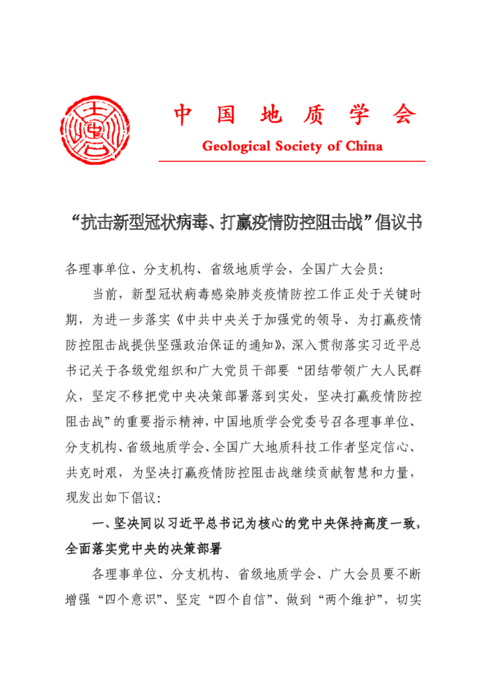 江苏省地质学会联合省地学类学会发出抗疫倡议