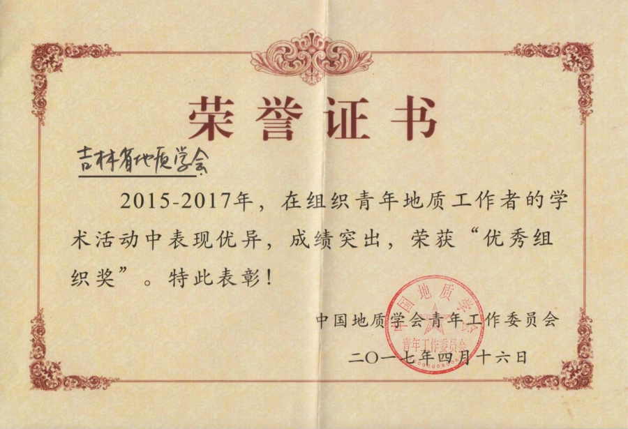 吉林省地质学会获得“优秀组织奖”