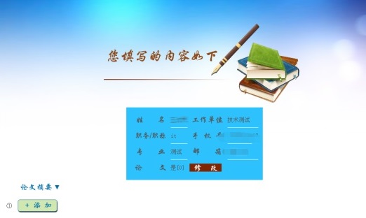 | 在添加论文摘要的页面,请您填写议题及论文信息。 |
